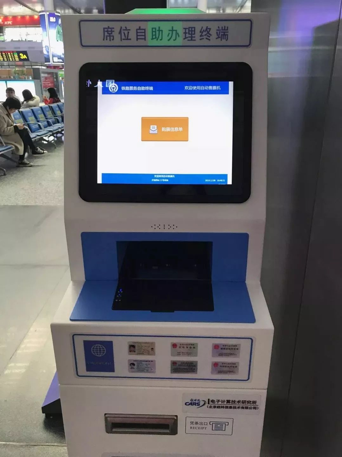 候车室内可以找到席位自助办理终端,点击打印购票信息单进行确认。