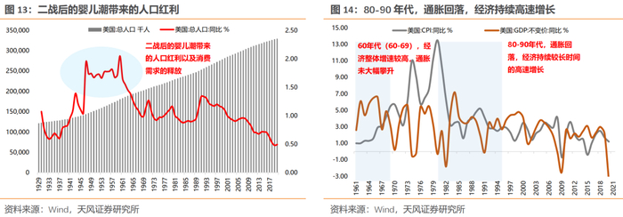 (1)二战后婴儿潮带来的人口红利以及消费需求的释放,加上减税、财政刺激等政策举措,开启了60年代之后的消费“黄金时代”(居民消费占GDP比重由1965年持续提升至2010年左右);