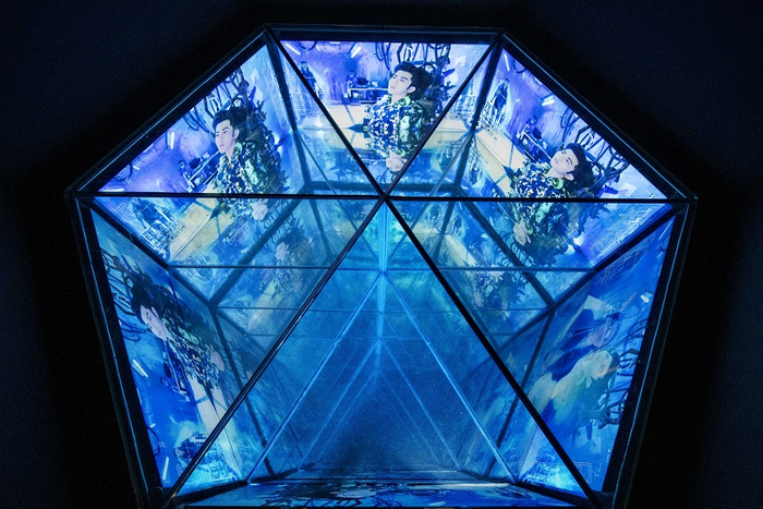 要将20多年来的影像、戏剧、虚拟现实技术和装置作品汇聚在一起,信息量是巨大的。展览里既有曹斐就读于广州美术学院时的实验戏剧作品,也有她最新的长期跨学科研究项目《红霞》(2019),作品主角既有怀揣梦想的普通工人,也有代表着流量和话题的流量明星。过去与未来,真实与虚拟,个人与社会,兼容在她的艺术作品中,也共存于《曹斐:时代舞台》展览现场。
