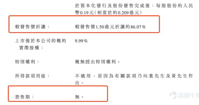 说回IPO本身,特纳斯和王苗合共认购7321万港元,约占发售股份26.1%,有6个月的禁售期。但值得注意,公司在上市前有两位个人投资者于2019年投资近1400万,上市后占股9.99%,较本次发售价折价86.7%,并且没有禁售期。