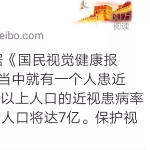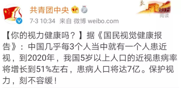 据《国民视觉健康报告》统计,我国5岁以上近视人口将达7亿!