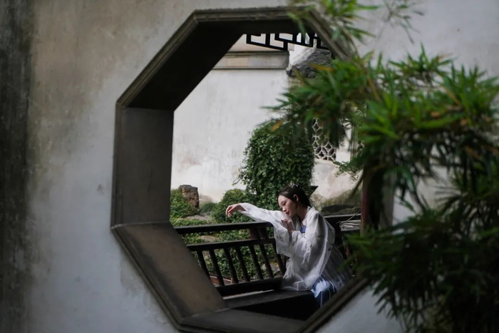 比如拙政园、留园等园林内随处可见的圆形洞门,是模仿天上圆月而筑,寄托了古今国人对圆满生活的诗意情结。再譬如作家郁达夫在《苏州烟雨季》中所述,烟雨朦胧的园林,不仅有雨滴空阶的浪漫,也让人感受到那份“远离尘嚣、风雅自得”。