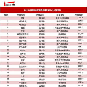 2020年西南地区酒店品牌影响力50强榜单