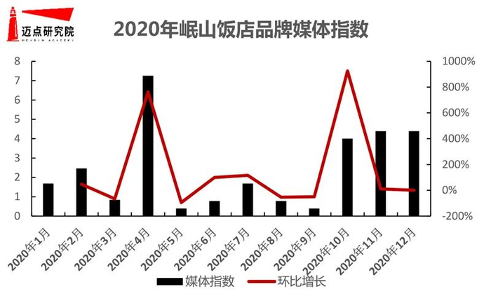 岷山饭店媒体指数表现良好, 2019-2020年月平均媒体指数为2.42,2020年岷山饭店的相关媒体信息主要集中在迈点网、四川新闻网、华西都市报、站长之家、新浪网、搜狐网等媒体平台,涉及餐饮促销、疫后重启、品牌获奖、门店特色等。