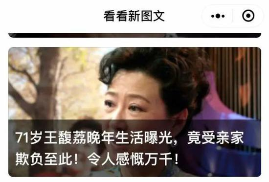 还有的文章写王晓棠“退休后被儿媳撵出家门”,有的写王馥荔“受亲家欺负”,有的写王芳晚年因缺钱被人嫌弃……