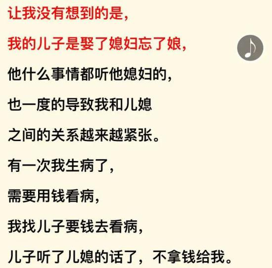 这篇文章引用了大量向梅的照片,并以她的自述口吻表示,后悔把退休金都给了儿子,却没想到儿子、儿媳均不孝,导致无钱看病,日子痛苦不堪。