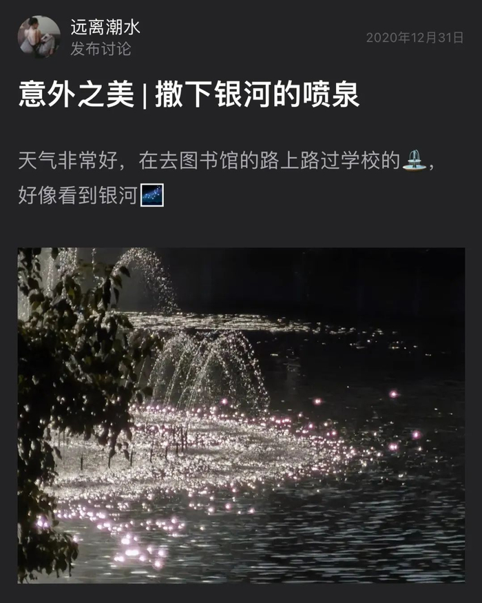 在大多数人的眼里,喷泉就是喷泉,但是在无用美学小组的成员眼里,很可能会从喷泉中看到整条银河。