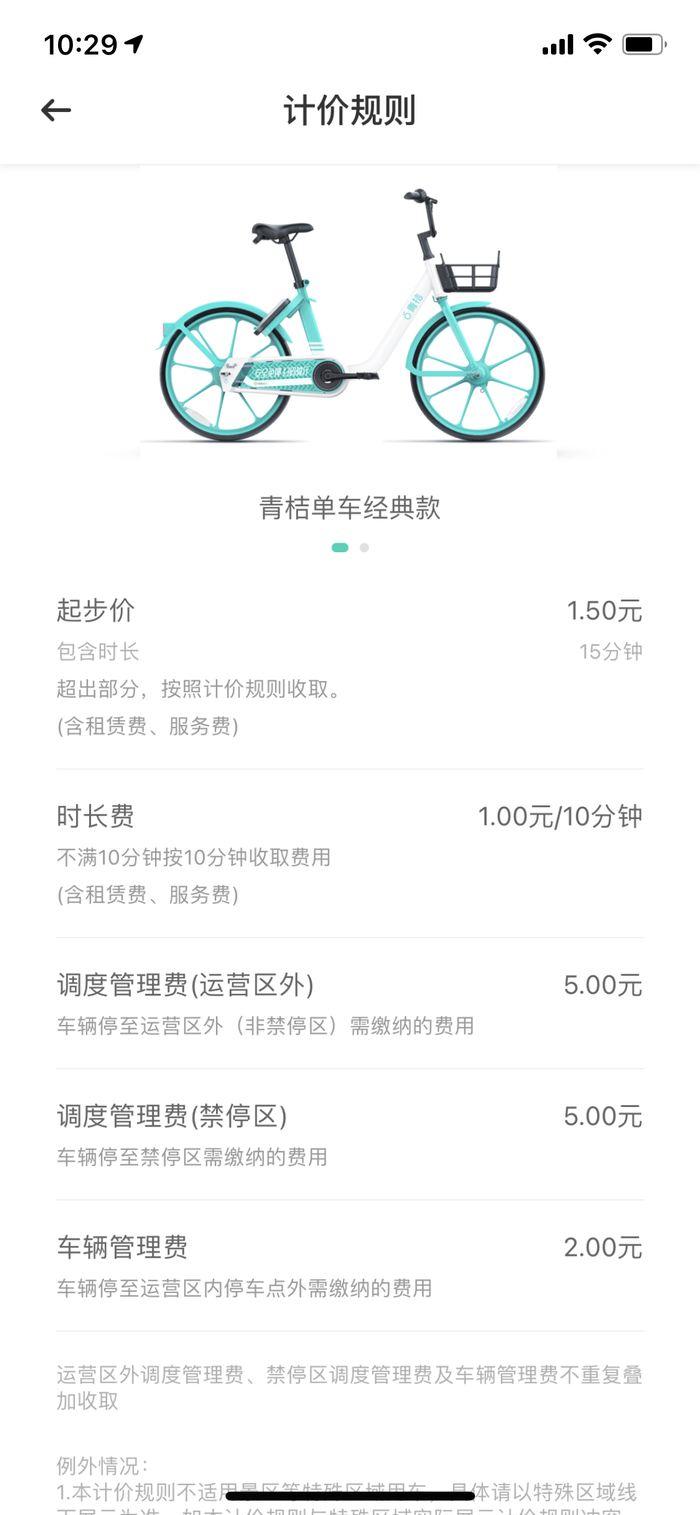 上海青桔单车方面,青桔经典款车型起步价1.5元(含15分钟),时长费为1元每10分钟,骑行55分钟就收费5.5元。