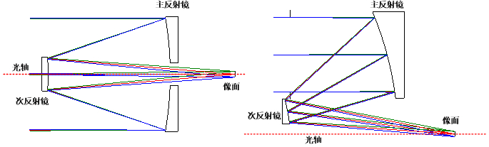 反射式光学系统按照光轴特性可以分为两大类:同轴光学系统和离轴光学系统。