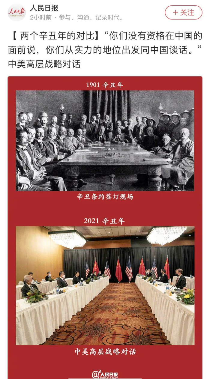另外,今天人民日报发布的“两个辛丑年的对比”图片也引发热议。