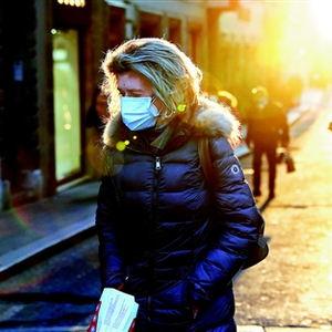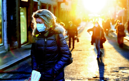 题图 一名戴着口罩的女子走在意大利首都罗马街头(1月27日摄)。