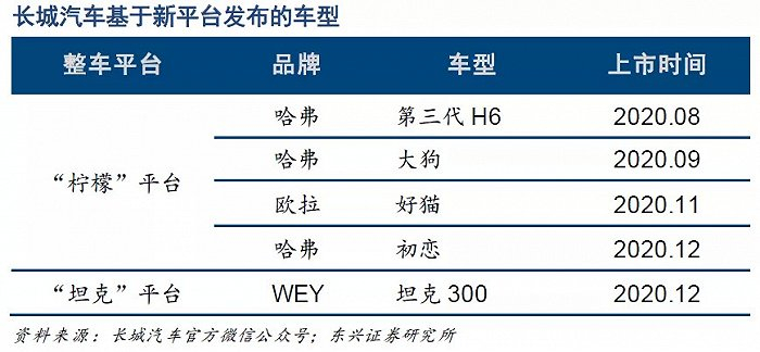 柠檬架构+坦克 WEY智能模块化车型技术平台,对于长城汽车来说,最为直接的影响就是以模块化方式,研发新产品以实现差异化产品竞争力。