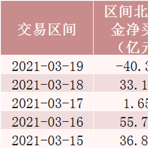 Choice数据显示,3月15日北向资金净流入36.87亿元,3月16日净流入55.72亿元,3月17日净流入1.65亿元,3月18日净流入33.15亿元,3月19日净流出40.32亿元。