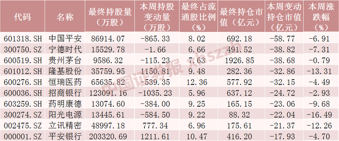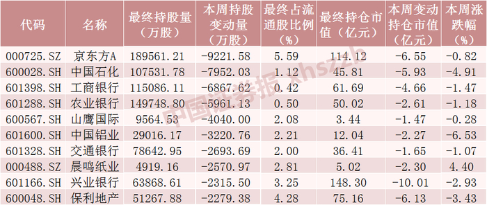 在北向资金本周加仓超80亿元的情况下,仍有不少个股被减仓。