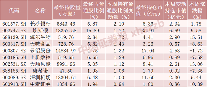 从市场表现上来看,本周北向资金持仓市值增加额前十的个股均上涨,中远海控周涨幅最大,上涨12.74%。