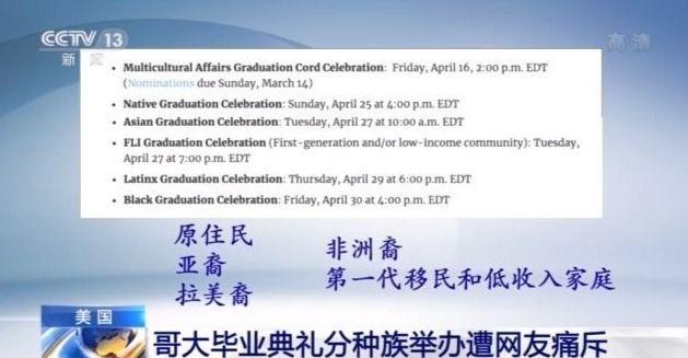 哥伦比亚大学会根据学生的家庭收入水平、种族等特点在4月25日至30日举办6场不同的线上毕业典礼,这种做法引发舆论哗然。