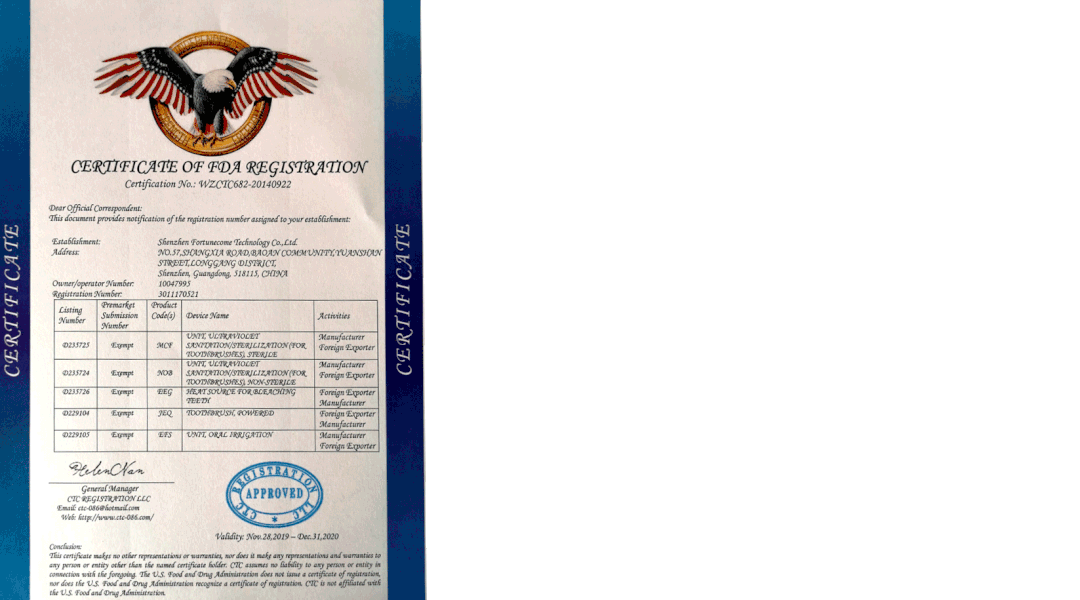 除了清洁能力强以外,雅玺冲牙器还通过了美国FDA的检测和认证。