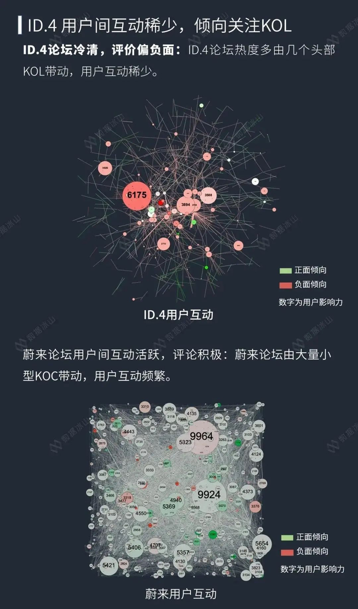 从用户互动的层面来看,ID.4的论坛里用户互动稀少,由少数几个头部KOL带动,而头部KOL对ID.4的态度普遍偏负面。认为大众仍然没有在ID.4里从油车的销售逻辑转换到电车上来,存在配置设定不合理、经销商体系臃肿等问题。