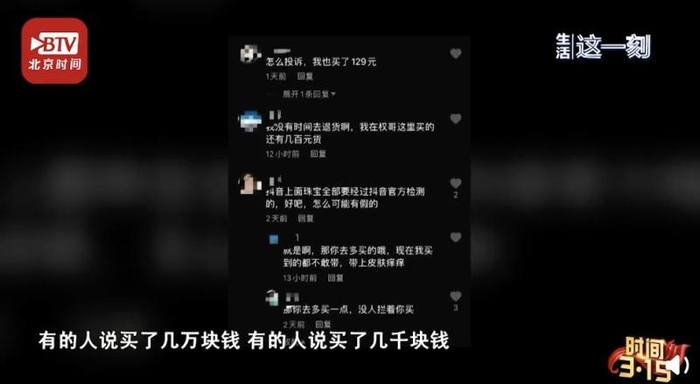 可没想到的是,大V卖的“珠宝”与宣传不符,有消费者反映佩戴后出现过敏反应。专业珠宝鉴定师鉴定后表示,大V卖的钻戒并不是所谓的“莫桑石钻戒”,而是一种人工合成的仿钻,且材料搭配容易致敏。