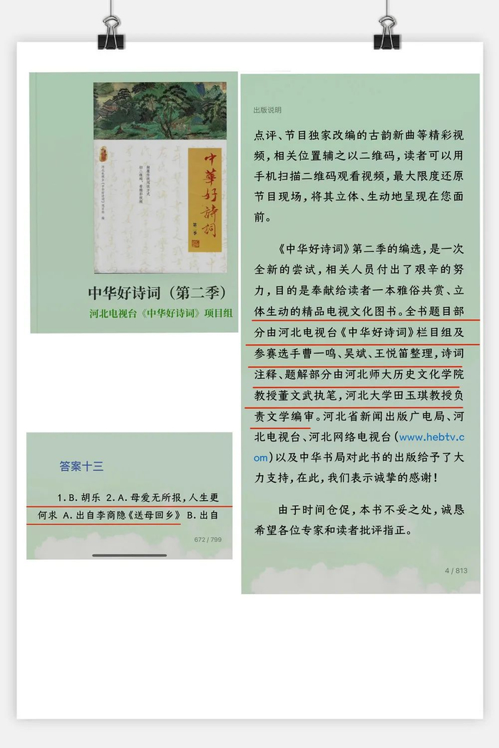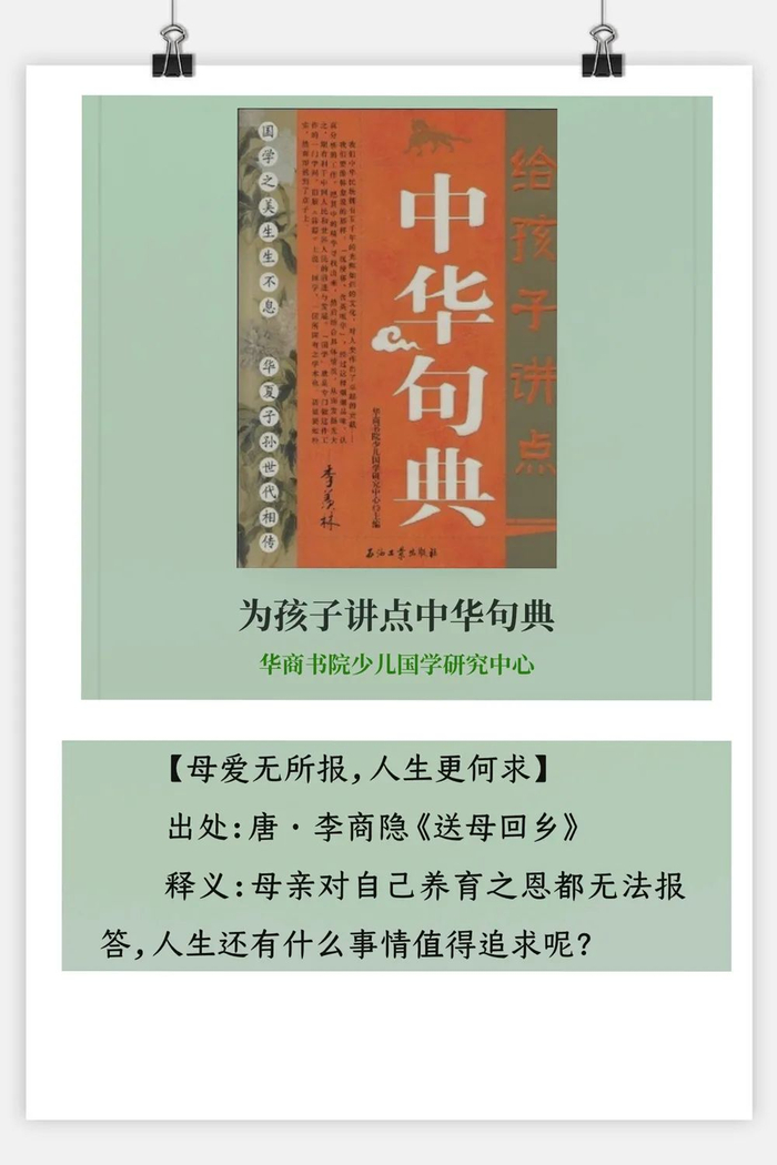随着李商隐这首“新作”声名日显,其进入各种选本也就水到渠成了。澎湃新闻记者随便利用手边阅读工具检索,就发现《给孩子讲点中华句典》(石油工业出版社,2009年)、《中华圣贤经大全集》(中国华侨出版社,2011年)、《百善孝为先》(台海出版社,2015年)、《中华圣贤经》(中国华侨出版社,2017年)等不少面向少年儿童的选本、读本中都收入了这首作品,其中还不乏入选北京市绿色印刷工程—优秀青少年读物绿色印刷示范项目、教育部新编语文教材图书。