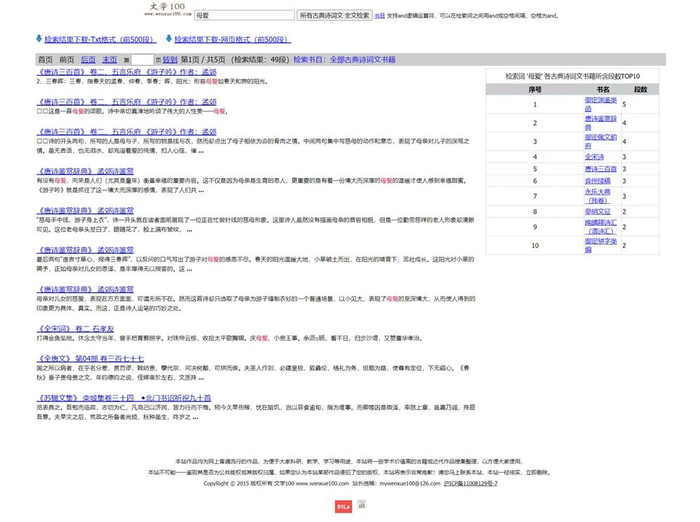 古诗文网检索“母爱”,仅《送母回乡》一首“唐诗”。