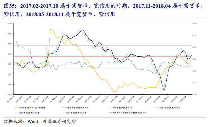 按照国债1年期收益率和社融存量同比、各项贷款余额同比划分的货币信用周期:2017.02-2017.10属于紧货币、宽信用的时期,2017.11-2018.04属于紧货币、紧信用,2018.05-2018.11属于宽货币、紧信用,换言之,2017年和2018年两年间都属于货币、信用的偏紧缩阶段,在这两年中我们观察到抱团股的当期净利润增速分位数下降得很快,背后可能反映的是两种要求: