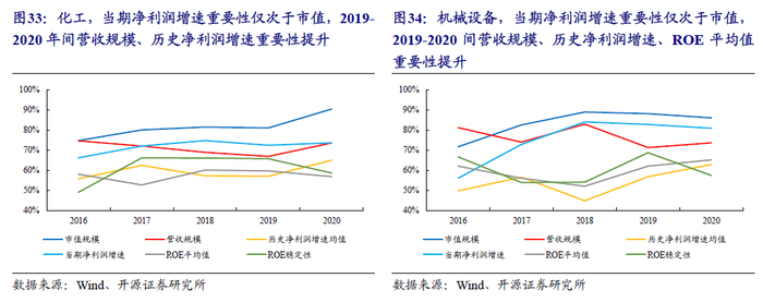 2020年相较于2019年,两个行业的营收规模、历史净利润增速、ROE平均值等历史归纳性指标的重要性已经在提升,也许是共识正在这两个行业中形成的标志。