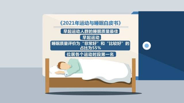 数据显示,早起运动人群的睡眠质量最佳,早起运动,睡眠质量评价为“非常好”和“比较好”的占比为55%,位居各个运动时段第一名。调查中,88%运动爱好者认为睡眠对运动很重要,男性对此更为认可;69%的运动人群感受到良好睡眠可改善健身状态;每天睡眠时长为7到8小时的运动人群,运动热情更高。调查还显示,新冠疫情期间,运动人群运动和睡眠状态两极分化,疫情使得规律运动人群更加重视运动和作息,而不规律运动人群则受疫情影响减少锻炼,作息更不规律。