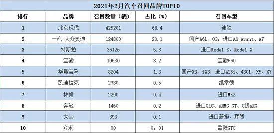 而在中国市场,同样的隐患存在于42.52万辆途胜中,也让北京现代成为2月国内汽车市场召回“第一大户”,占2月汽车整体召回数量的68.4%。