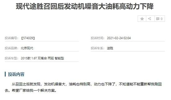 事实也确实如此。从汽车投诉网站车质网的统计信息来看,北京现代途胜机油增多问题仍没有得到彻底解决,发动机功率不足、油耗高、机油增多及召回方案不合理等依然是被投诉的典型问题。