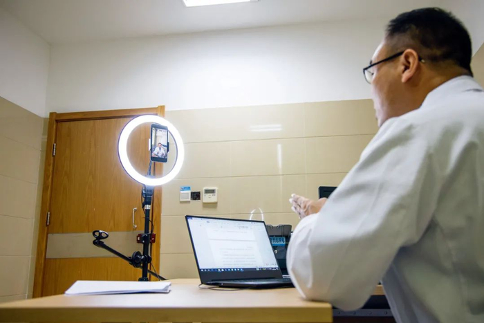 2020年10月9日,江苏镇江市精神卫生中心的医务人员在“云端”为网友提供心理咨询。图/人民视觉