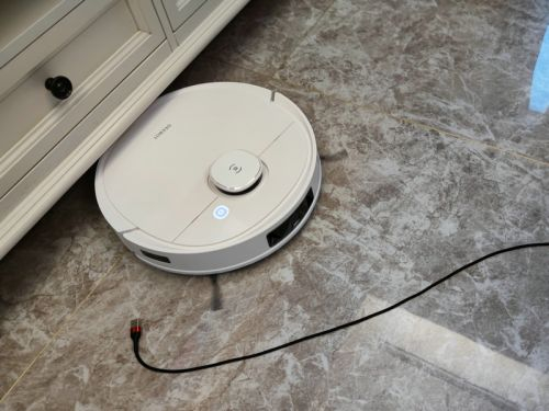 为了实际测试DEEBOT T9的避障功能,我们在地面上摆放了生活中最为常见也最容易缠绕扫地机器人的数据线,机器在运行的过程中,很快就扫描出了数据线的位置,并准确作出判断,快速避障,丝毫没有出现碾压缠绕的情况。这下以后在家中无人的情况下再打开扫地机器人的定时清理模式,就安心多了。
