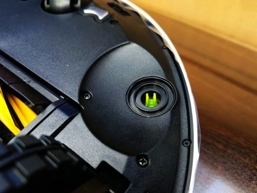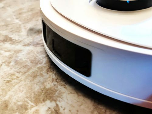 正前方的是一个大大的黑色窗口,里面是一个避障所使用的3D传感器。搭载了升级版的Truedetect 3d 2.0避障技术,能够感知和判断一些障碍的尺寸,可以识别1mm的物体,精度比传统的红外线感应的扫地机器人高了十倍以上。