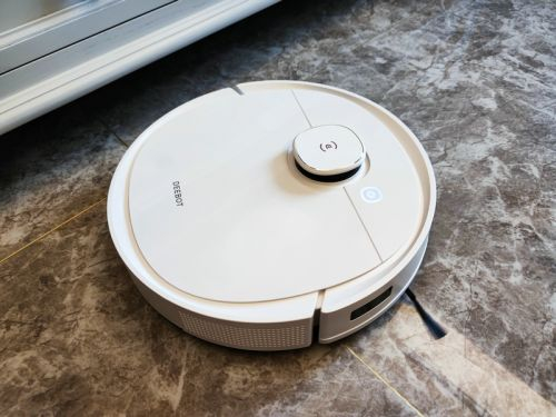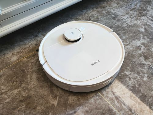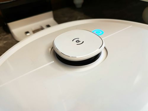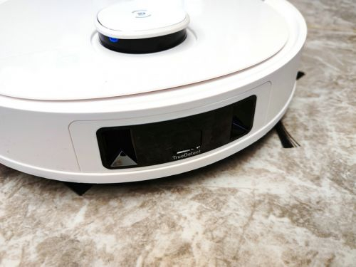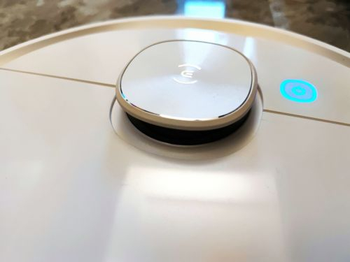 而在一些细节方面,科沃斯还是做了不小的优化和改善。正面上方只有一颗按键,作为开启和暂停之用(长按即可返回充电),操作简洁明了。