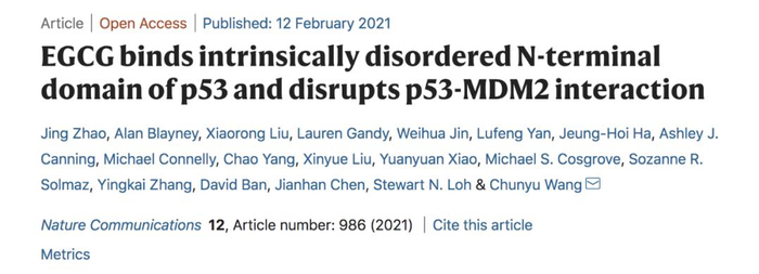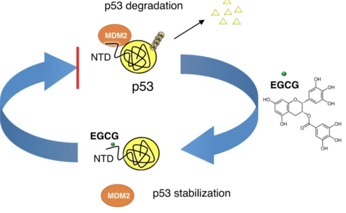 P53具有几种众所周知的抗癌功能,包括停止细胞生长以进行DNA修复,激活DNA修复以及如果无法修复DNA损伤则引发程序性细胞死亡(称为凋亡)。在超过50%的人类癌症中发现p53的突变,而EGCG是绿茶中的主要抗氧化剂,现在发现,两者之间存在一种以前未知的、直接的相互作用,这为开发抗癌药物指出了一条新的道路。