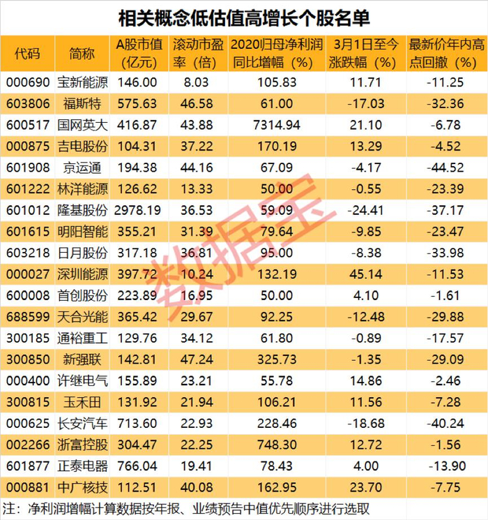 相关概念低估值高增长个股名单出炉