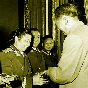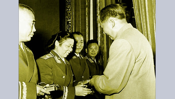 1955年,中国人民解放军第一次授衔仪式上,她是唯一一位被授予将军衔的女性;1959年,国庆十周年,230位开国将军组成了一个“超高规格”合唱团。队伍中,她格外引人注目。