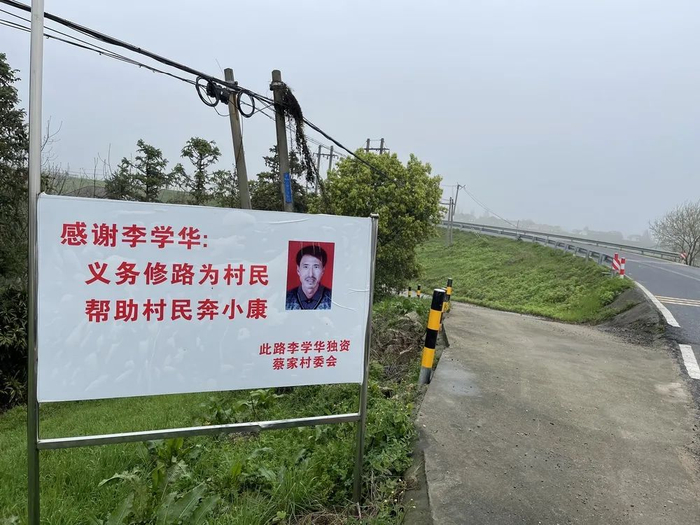 南昌县塘南镇蔡家村村口的路边竖着一块牌子,上面写道“感谢李学华,义务修路为村民,帮助村民奔小康”。牌子旁边是一条水泥路,这是他在过去25年里修建的众多通村路中的一条。