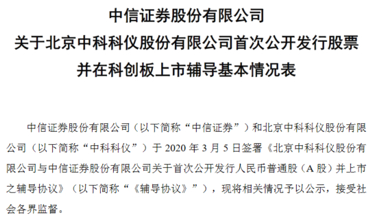 挖贝网 3月22日,北京中科科仪股份有限公司(以下简称“中科科仪”)与中信证券签署上市辅导协议,并于近日在北京证监局备案。