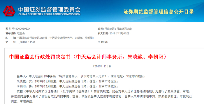当事人:中天运会计师事务所(特殊普通合伙,以下简称中天运所),注册地址:北京市西城区。