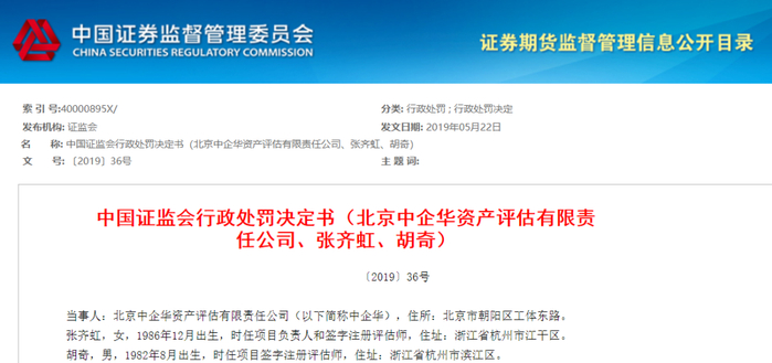 中企华是在粤传媒收购香榭丽项目中未勤勉尽责的证券服务机构,项目签字评估师张齐虹、胡奇是直接负责的主管人员。