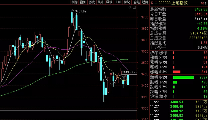 下午关注:大盘能否收在3400点之上?成交量能否达到8000亿?
