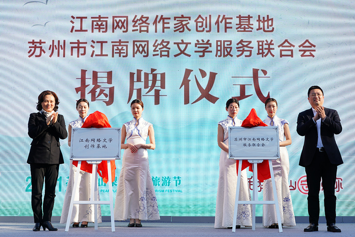 开幕式上,江南网络作家创作基地揭牌、落户树山村,苏州市江南网络文学服务联合会成立,首批网络作家入驻基地,将进一步延续蓬勃的江南文脉,打通传统和现代,创作更多优秀的网络文学作品,提高苏州网络文学在全国的影响力、美誉度,真正打响“江南文化”品牌。基地特聘请中国作家协会网络文学研究院研究员马季为江南网络文学创作顾问,为网络作家提供引导与支持。阅文集团、江苏凤凰文艺出版社、欧瑞集团、苏州雷朗影视传媒有限公司等4家公司发布、出版单位签署战略合作协议,推进网络文学各项产品转化,助力文化产业繁荣发展。“为了吸引并方便网络作家的创作,市委宣传部牵头为网络作家在树山打造了一个安心舒适的创作基地,聚集社会各方面力量支持网络作家的创作,繁荣网络文学创作,涵养江南文化审美趣味,提升江南文化品牌影响力。”苏州市江南网络文学服务联合会相关负责人表示。