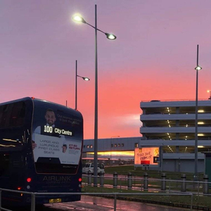 “照片是完成学业后回国的那天早上在机场拍的,粉色的天空真像一句祝福”