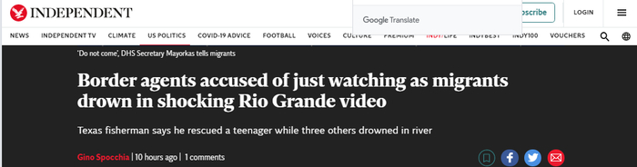 【环球网报道 记者 王心怡】“他们快要淹死了……那个女孩没上来!”据英国《独立报》等媒体23日报道,近日,一段移民偷渡过河拼命挣扎,美国边防巡逻人员却站在一边旁观他们溺亡的视频被曝光并引发争议。