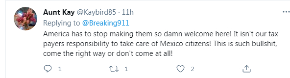 “美国必须停止欢迎他们(移民)来到这里。照顾墨西哥公民不是我们纳税人的责任!这太扯了,要么走对的路,要么就别来!”