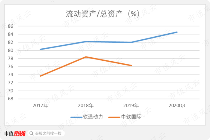 但对比来看,2017-2019年,软通动力的资产负债率仍明显高于中软国际;其中,软通动力的资产负债率虽有所降低,但仍徘徊在60%的水平,中软国际则基本保持在40%附近。