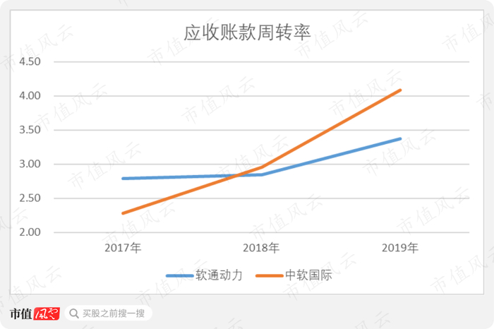 应收账款方面,2017-2019年,软通动力和中软国际的应收账款周转率差别不大。