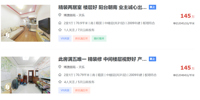 记者发现,目前在链家网站上,博澳丽苑近日上新的房源挂牌价大多高于1.6万元/平方米,本周挂牌均价较上周上涨14.8%,房客比为18.1。