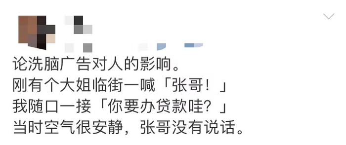 也许是为了给大家吃颗定心丸,有段时间电台里一直在播张哥贷到款了,并且紧接着下一条广告就是张嫂怀孕: